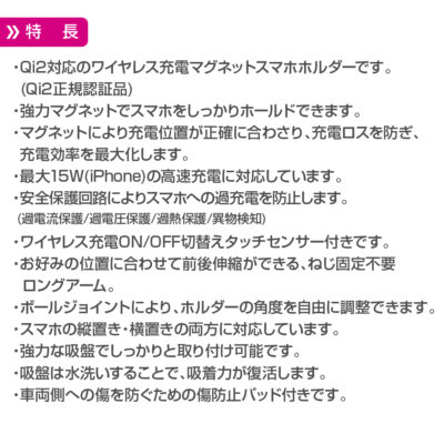 PH2642 Qi2対応 マグネットスマホホルダー ロングアーム吸盤