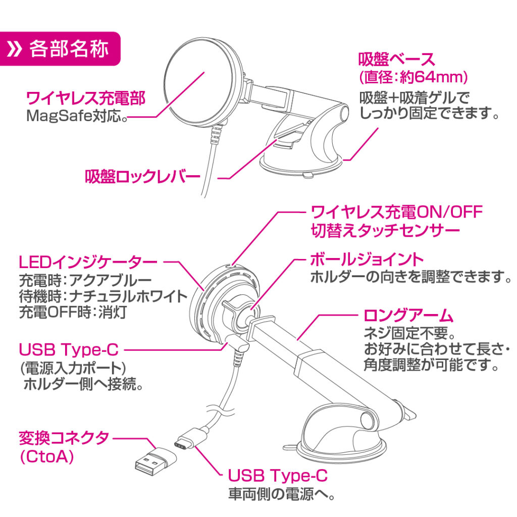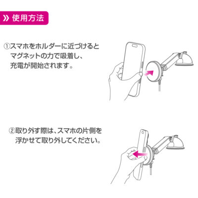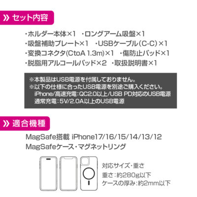 - Qi2対応 マグネットスマホホルダー ロングアーム吸盤