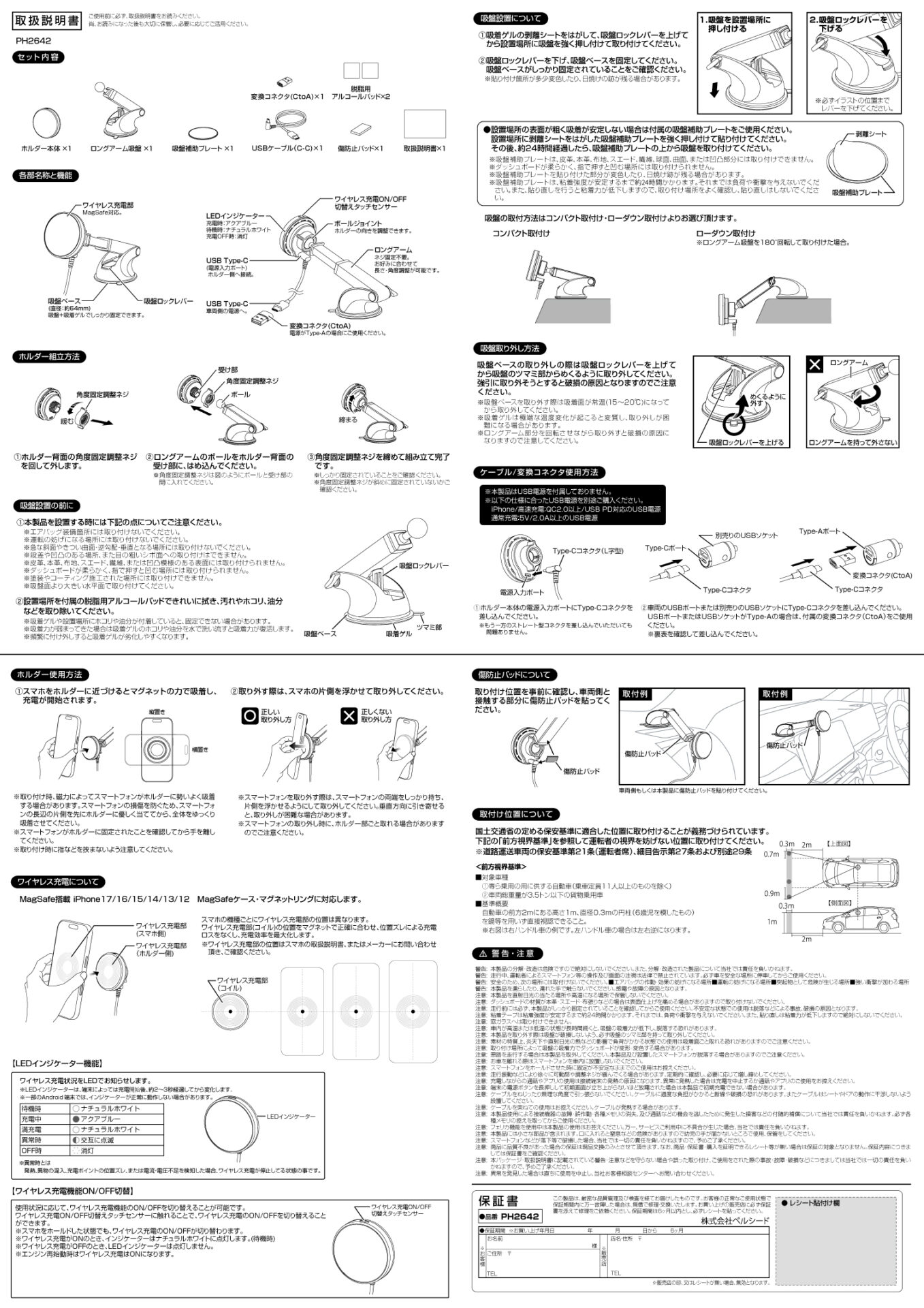 PH2642 Qi2対応 マグネットスマホホルダー ロングアーム吸盤
