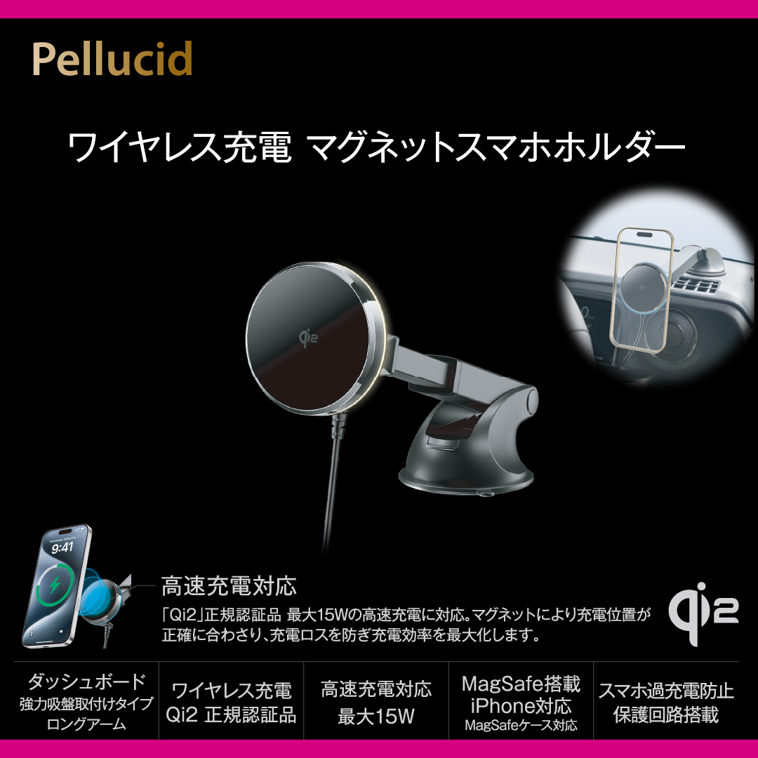 ・Qi2対応のワイヤレス充電マグネットスマホホルダーです。(Qi2正規認証品)