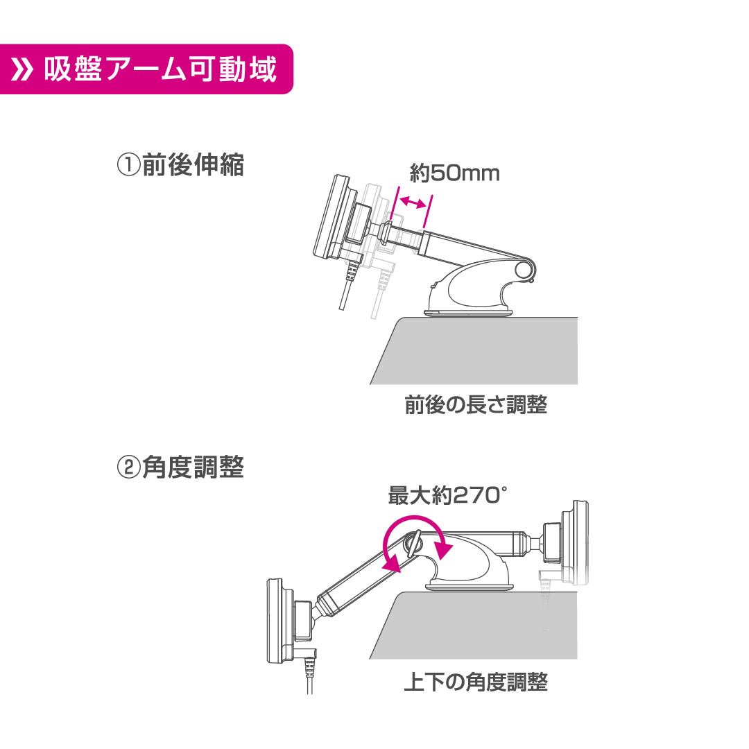 - Qi2対応 マグネットスマホホルダー ロングアーム吸盤