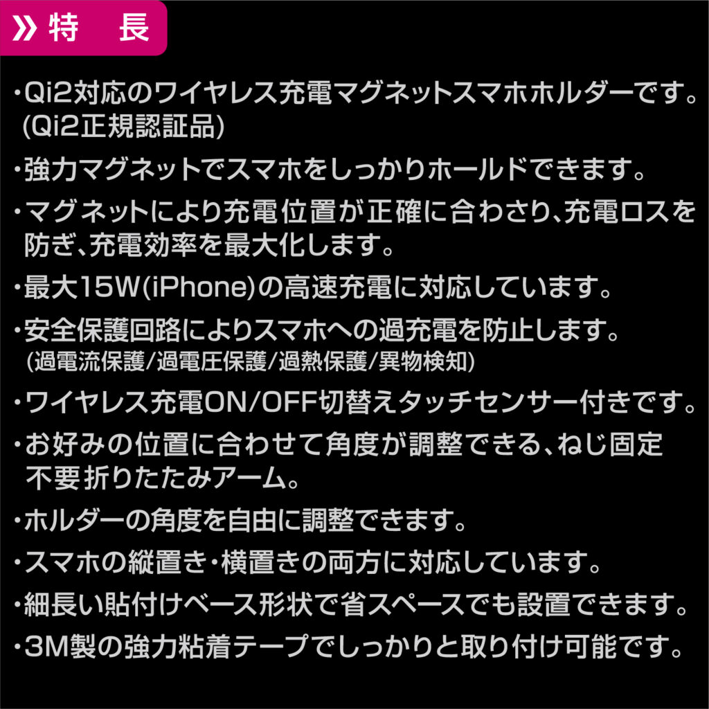 ・Qi2対応のワイヤレス充電マグネットスマホホルダーです。(Qi2正規認証品)
