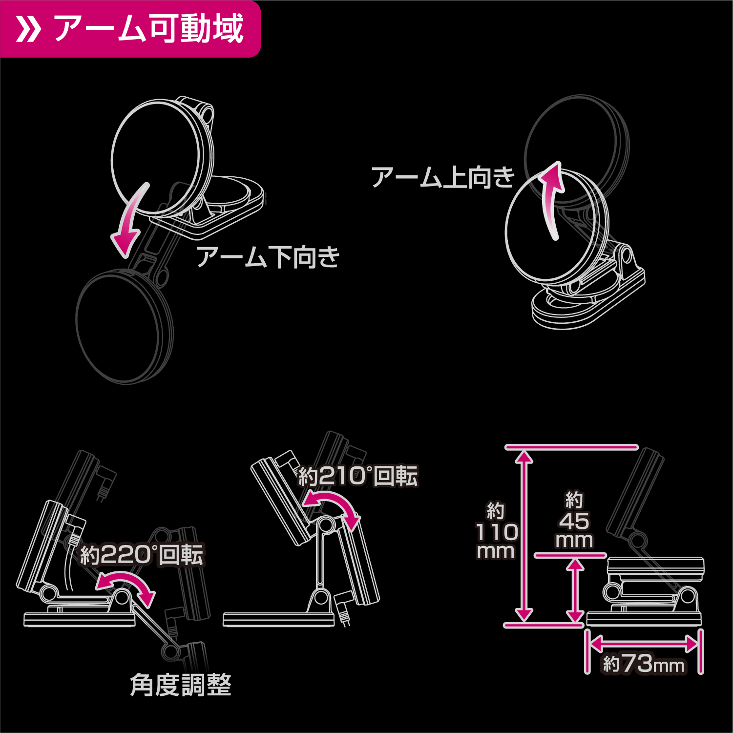 ・お好みの位置に合わせて角度が調整できる、ねじ固定不要折りたたみアーム。