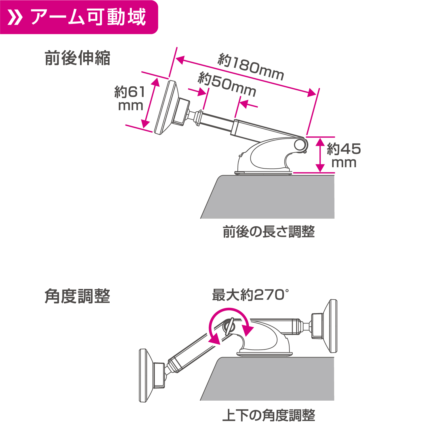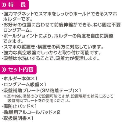 PH2622 マグネットスマホホルダー ロングアーム吸盤