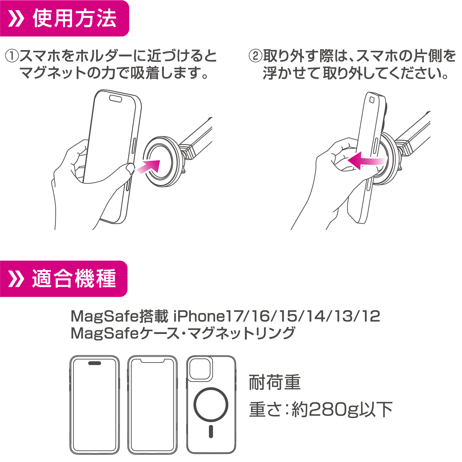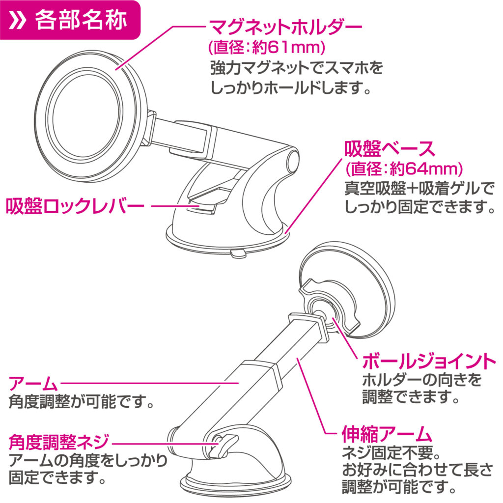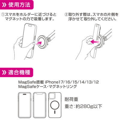 ・強力マグネットでスマホをしっかりホールドできるスマホホルダーです。